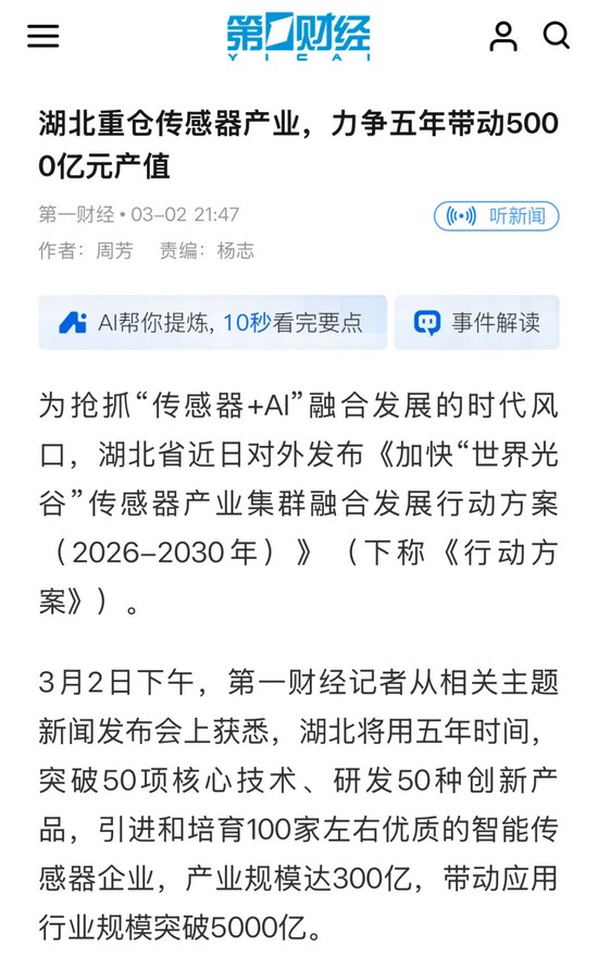 華工科技董事長馬新強(qiáng)對(duì)第一財(cái)經(jīng)記者表示,公司將聚焦高端智能傳感器技阿術(shù)攻關(guān),推進(jìn)“機(jī)器人+ AMR +視覺智能體 + MES”一體化協(xié)同,應(yīng)用場(chǎng)景從“家電+汽車”向“智慧生活+智慧出行+智慧電網(wǎng)+光伏儲(chǔ)能+具身智能”深度拓展,并聯(lián)合上下游企業(yè)圍繞核心零部件等“卡脖子”領(lǐng)域開展聯(lián)合攻關(guān),實(shí)現(xiàn)核心部件從研發(fā)到量產(chǎn)的自主可控,全面提升國產(chǎn)傳感器產(chǎn)業(yè)鏈供應(yīng)鏈韌性與安全水平。