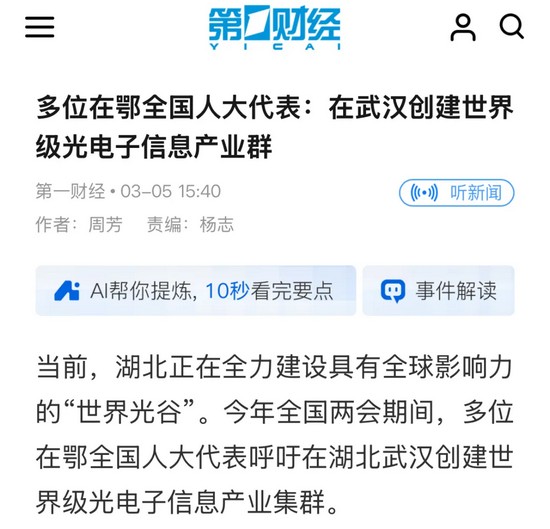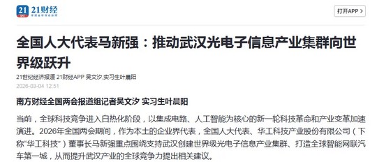 “在武漢創(chuàng)建世界級(jí)光電子信息產(chǎn)業(yè)集群,是服務(wù)國家全球化發(fā)展戰(zhàn)略、搶占全球科技產(chǎn)業(yè)競爭制高點(diǎn)的關(guān)鍵布局,其能夠在集成電路、AI等關(guān)鍵核心領(lǐng)域代表國家參與全球競爭?!?月27日,全國人大代表、華工科技產(chǎn)業(yè)股份有限公司董事長馬新強(qiáng)在接受《證券日?qǐng)?bào)》記者專訪時(shí)表示,今年兩會(huì)期間,將重點(diǎn)關(guān)注在武漢創(chuàng)建世界級(jí)光電子信息產(chǎn)業(yè)集群相關(guān)事項(xiàng)。