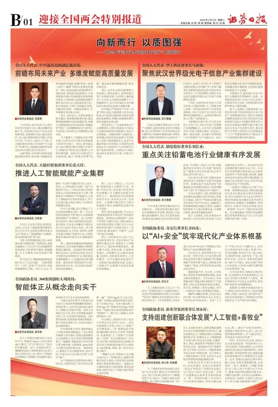 人民日?qǐng)?bào)《兩會(huì)特刊》、新華社《新華每日電訊》、證券時(shí)報(bào)、證券日?qǐng)?bào)、上海證券報(bào)、21世紀(jì)經(jīng)濟(jì)報(bào)道、每日經(jīng)濟(jì)新聞、經(jīng)濟(jì)觀察報(bào)、第一財(cái)經(jīng)、支點(diǎn)財(cái)經(jīng)、湖北日?qǐng)?bào)、長江日?qǐng)?bào)等多家媒體關(guān)注馬新強(qiáng)代表的履職情況及華工科技創(chuàng)新發(fā)展。